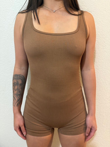 Fall baddie romper - brown
